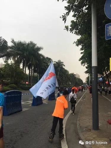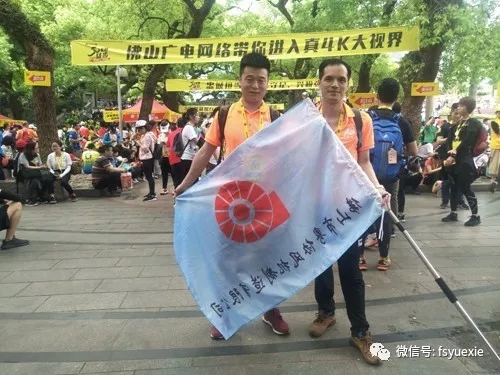 小帥哥拿著“粵協風機”旗向前沖![]()