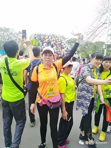 迎著陽光燦爛朝向終點出發、大家一路歡聲笑語、相互鼓勵、相互支持