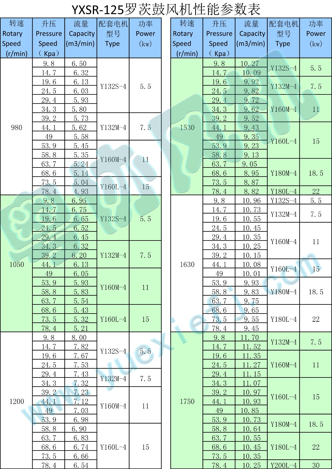 YXSR-125羅茨鼓風(fēng)機(jī)工作原理:三葉羅茨鼓風(fēng)機(jī)通過機(jī)體內(nèi)同步齒輪的作用,使兩葉輪相對(duì)地呈反方向旋轉(zhuǎn),葉輪之間以及葉輪與機(jī)體之間皆具有適當(dāng)?shù)墓ぷ鏖g隙。機(jī)殼材質(zhì)HT200,葉輪在旋轉(zhuǎn)過程中使進(jìn)、排氣口相互隔開...