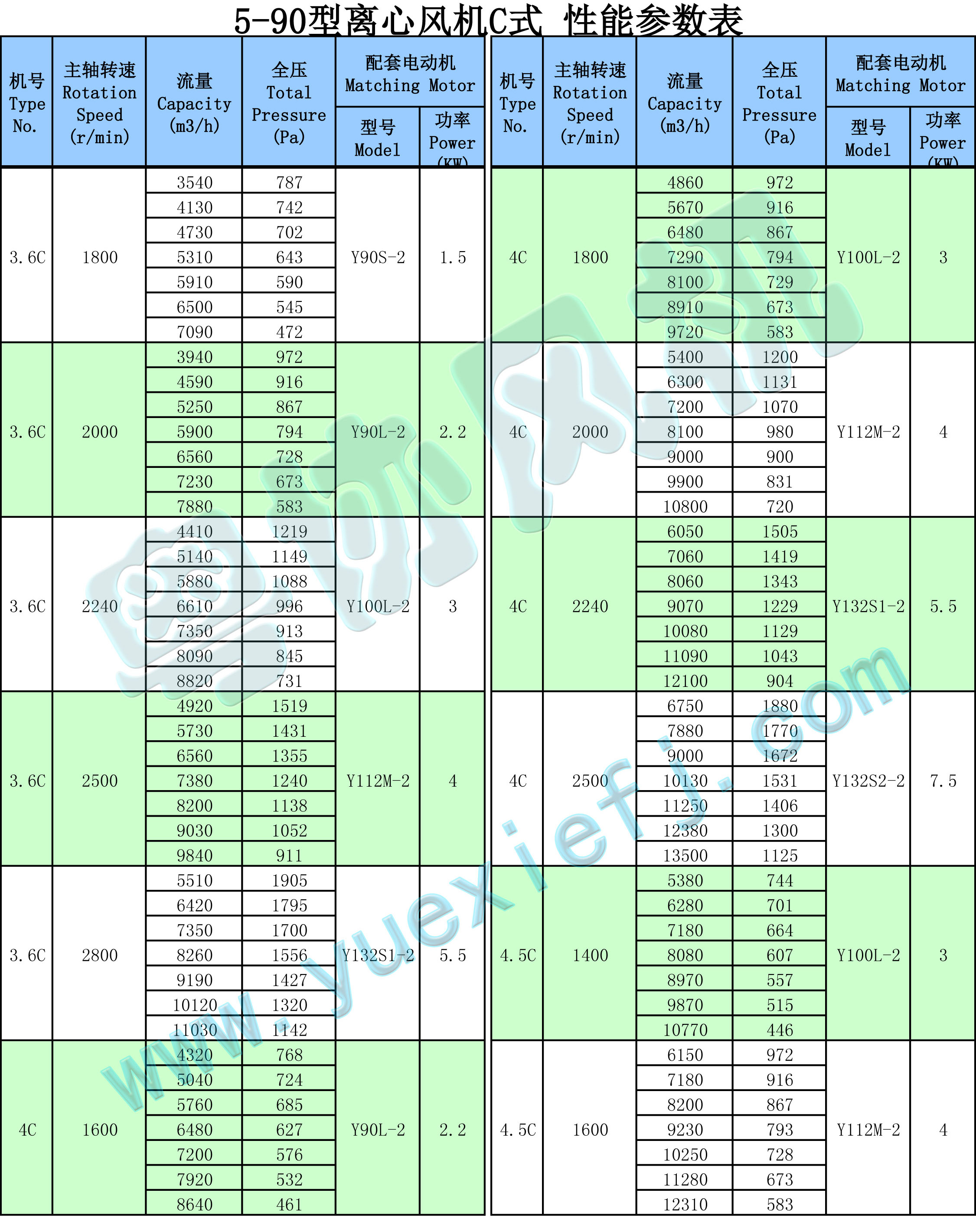 5-90 C型離心風(fēng)機(jī), 一般用于工廠或大型建筑物的室內(nèi)通風(fēng)換氣,它既可輸入氣體,也可輸出氣體。它輸送的氣 體為空氣或其他不自燃、不自爆、無(wú)纏繞性、對(duì)人體無(wú)害、對(duì)鋼鐵材料 無(wú)腐蝕之氣體。氣體內(nèi)不得含粘性物質(zhì),所含塵土及硬質(zhì)顆粒物不大于150mg/m3。氣體溫度不得超過(guò)80°C。其他性能相近者亦可選用。