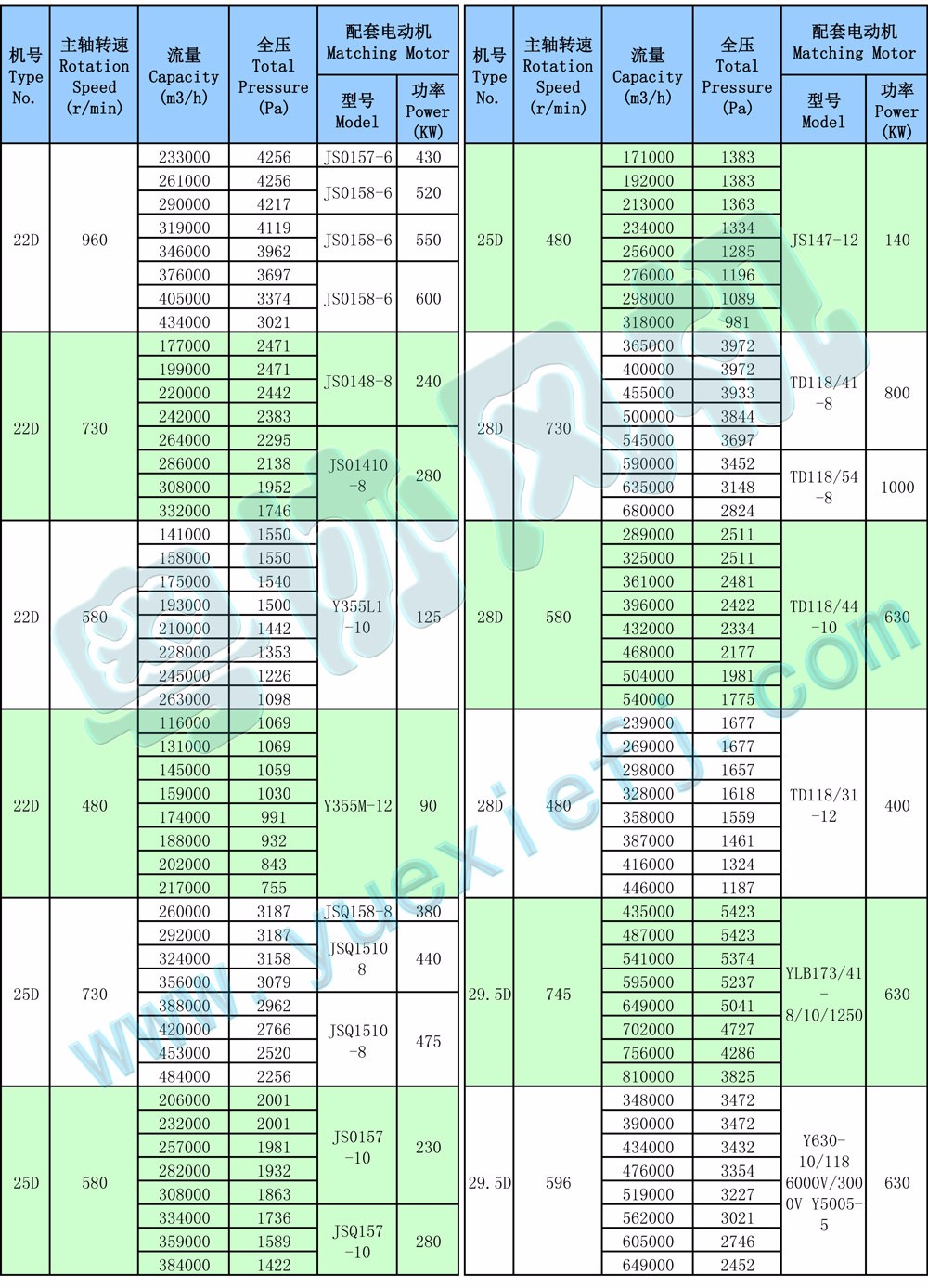 1、鍋爐鼓風機與鍋爐引風機制成單吸入、各有№8~16共12個機號。
